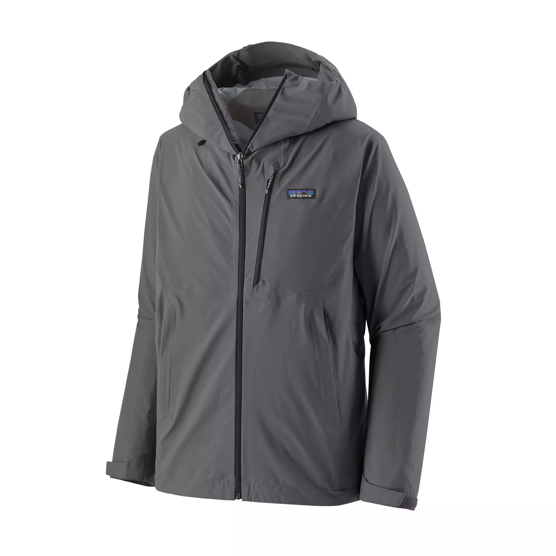Jacket has low-profile self-fabric hook-and-loop cuff closures and self-stuffs into the left-chest pocket
