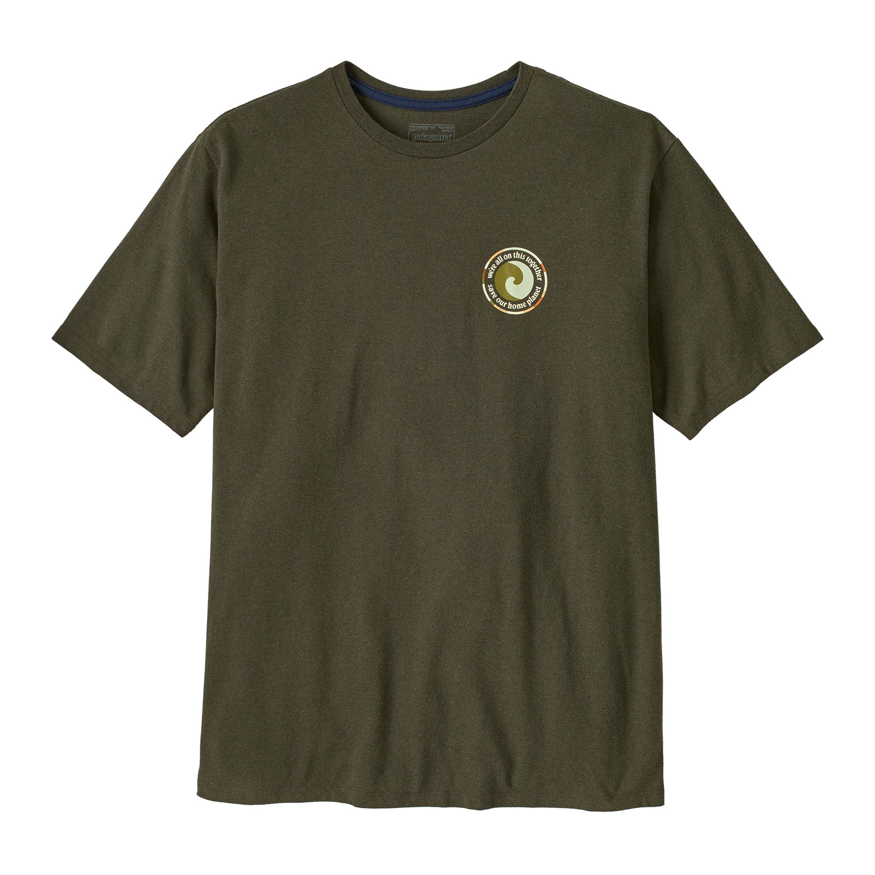 The Patagonia Men's Unity Fitz Responsibili-tee is a breathable and quick drying t-shirt that is made from 100% recycled materials. This T-shirt is made from responsibly sourced, recycled materials, and is Fair Trade certified.