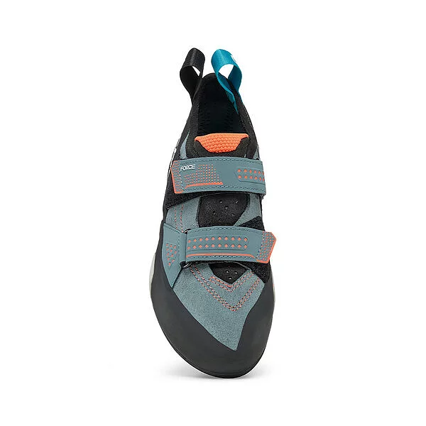 Force V offers the perfect blend of comfort and technology. With a flat and neutral shape and low angled toe box it excels in all day climbing.