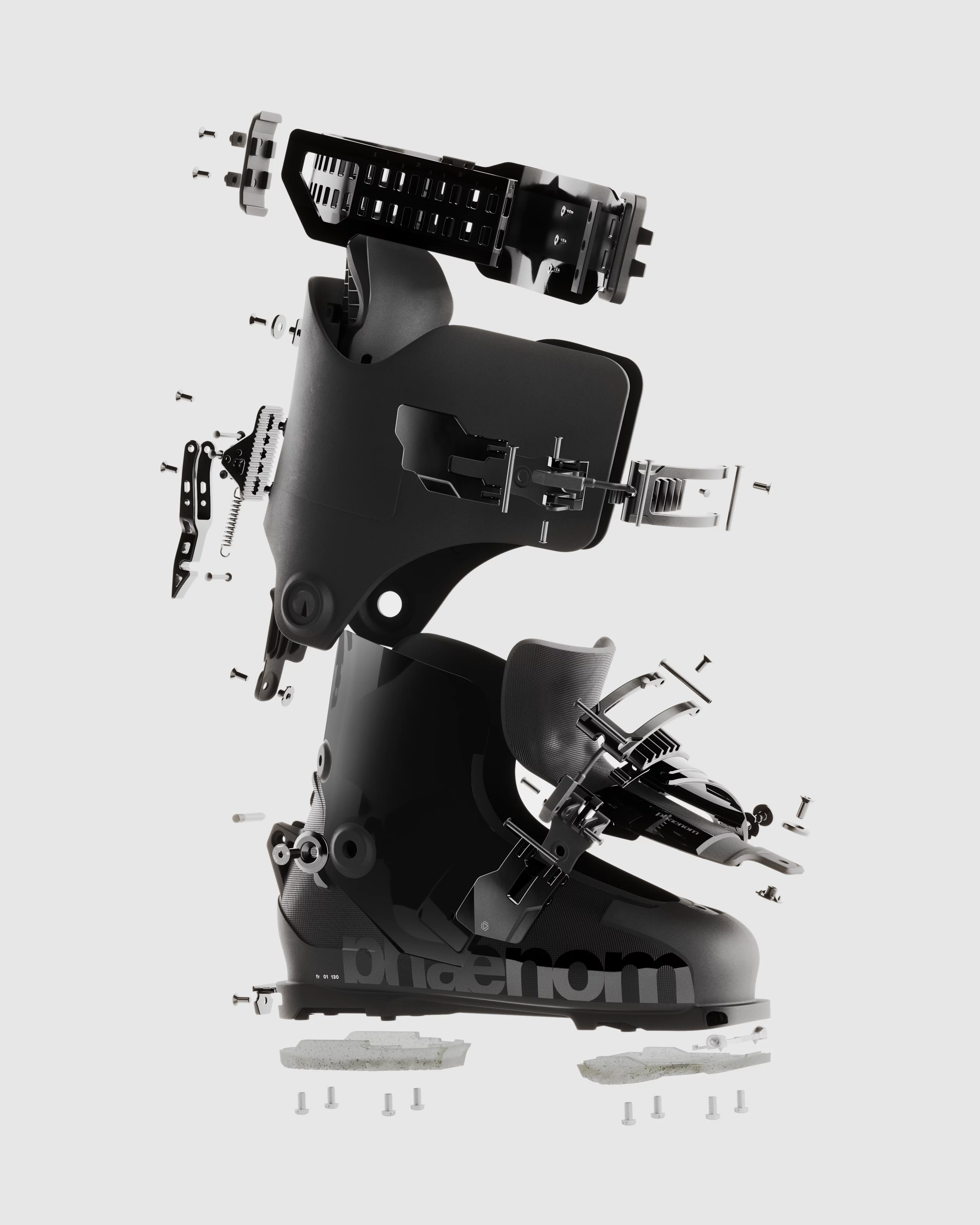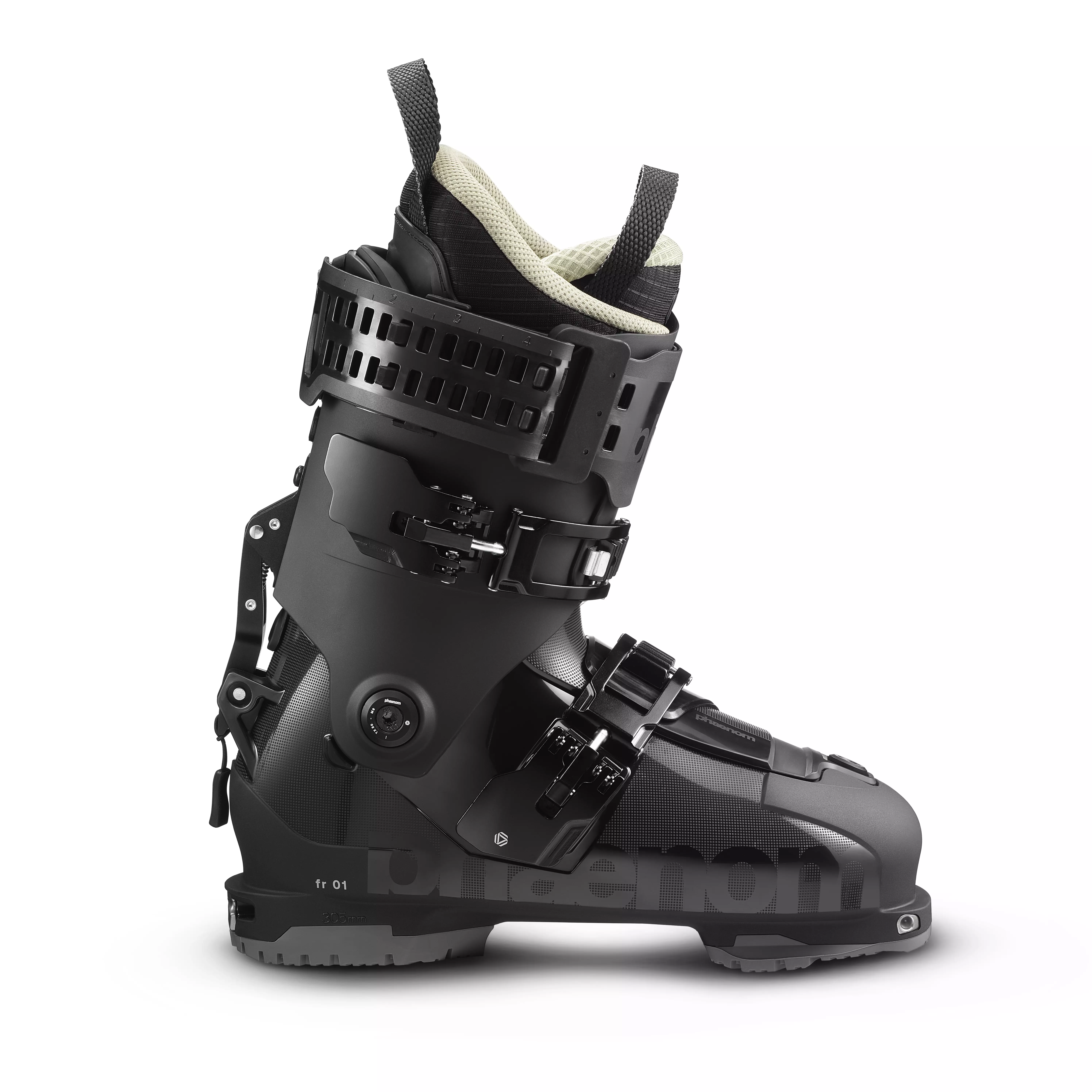 Der fr 01 110 Freeride-Schuh ist für diejenigen konzipiert, die sowohl Komfort als auch Performance suchen. Er bietet ein überzeugendes und aktives Fahrgefühl, das zugleich verzeihend ist. Die innovative Hybridkonstruktion aus Cabrio und Overlap vereint das Beste aus beiden Welten: die enge Passform und Kantenkontrolle eines Overlaps sowie den progressiven Flex des 3-teiligen Cabrio-Designs. In Kombination mit dem patentierten phaenom strap verschafft der fr 01 110 Rebound, Dämpfung und außergewöhnliche Flexkontrolle. Die Elastizität des Straps erzeugt spürbare Agilität während deiner Schwünge, was zu einer verbesserten Kraftübertragung, präzisen Kurveneinleitung, Komfort und Berechenbarkeit führt. Das elegante, all-black Design unterstützt die Reparatur und Wiederverwendung des Schuhs und seiner Teile. Jedes Element dieses Produkts – von der Schale über die Schnallen bis hin zu den Schrauben und dem Strap – ist so konzipiert, dass es repariert und recycelt werden kann.