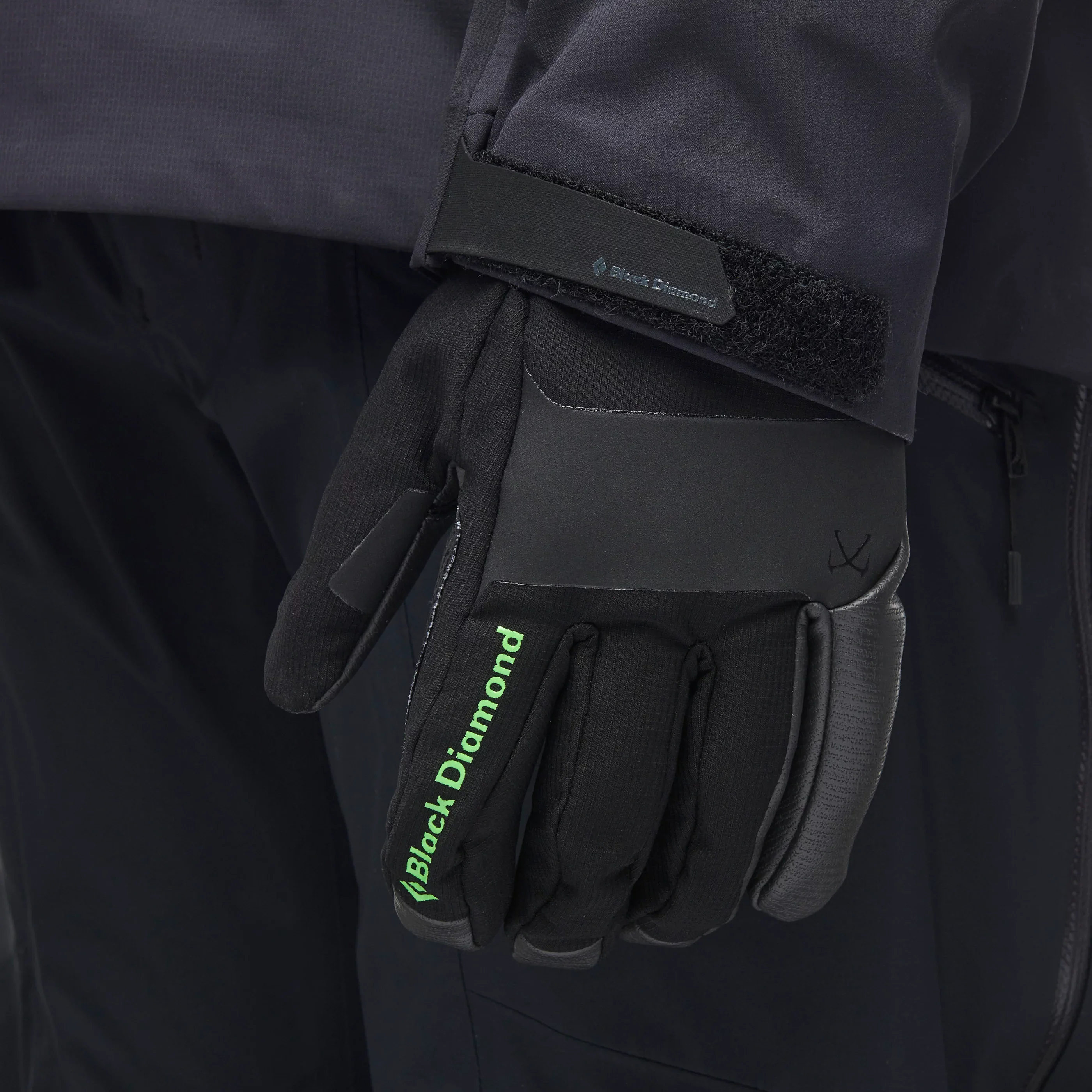 Built for high-end mixed climbing and gymnastic drytool routes, the Black Diamond Torque Glove features a super-sticky Slim-Stop palm and low-profile construction for unmatched grip and dexterity. The softshell fabric protects your hands from the elements while remaining highly breathable, and the soft tricot lining adds just enough warmth for the WI5 dagger hanging above the crux. The TPU knuckle and thumb patch protects against abrasion and an ice tool specific, pre-curved fit provides a secure grip. Our innovative "seamless pinky" construction, where we've removed the seam on the pommel side of the pinky, increases the level of comfort when hanging on your tool.