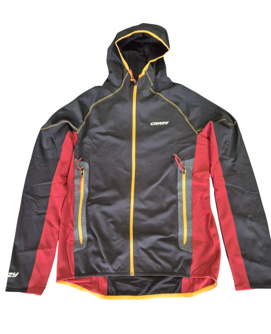 Constructed from lightweight technical fabric, this garment offers excellent breathability and comfort. The design includes a hood with elastic trim, a full front zipper, laser-cut side pockets with double zips, and thumb loops on the sleeves for added comfort during activity.