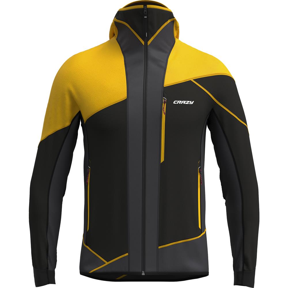 The CRAZY JACKET CHANNEL combines insulating and breathable textiles in a multi-panel design that optimizes comfort and performance in variable conditions. The seamless front panel uses I-Tube fabric filled with Microrollo synthetic insulation, offering down-like warmth yet quick drying. The sides and lower sections are made from a breathable two-face fabric with water-repellent treatment, while the back, shoulders and sleeves are constructed from Airtastic fabric lined with Polartec Alpha Direct, which can be worn next to the skin and provides excellent temperature regulation.