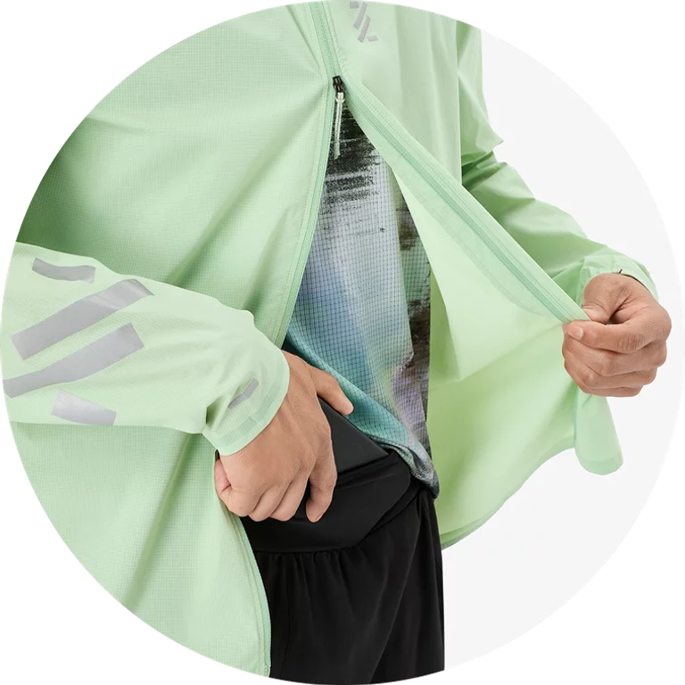 The Nnormal Trail Wind Jacket is an ultra-light, wind-resistant layer designed for trail running and outdoor activity. Made from 100% recycled, soft-touch polyester and weighing just around 123 g, it offers excellent packability and freedom of movement. A two-way front zipper allows quick ventilation control, while reflective details ensure visibility in low light. With an adjustable hood and a stowable design that folds into its own pocket, it’s a versatile choice for unpredictable weather on the trail.