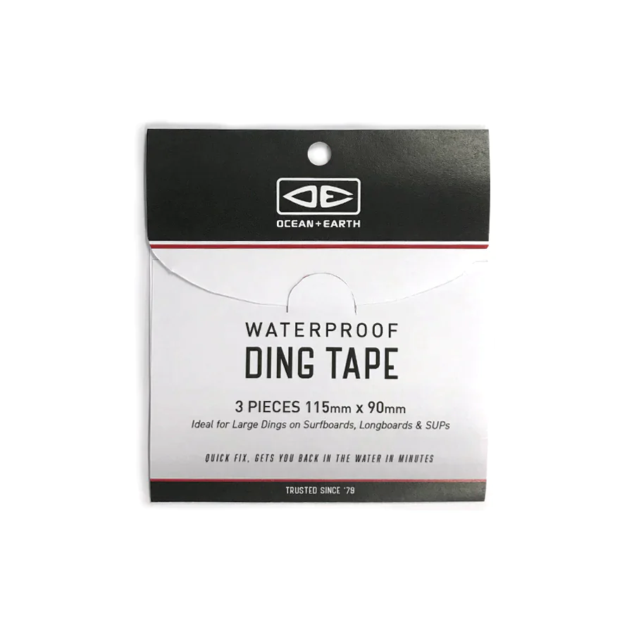 Damaged your board? Ocean and Earth's Waterproof Surfboard Ding Tape (Large) is a great quick-fix solution that will get you back in the water in seconds. Comes with 3 x repair patches ( 115mm x 90mm ). Easy to apply this is an essential item for all travelling surfers.