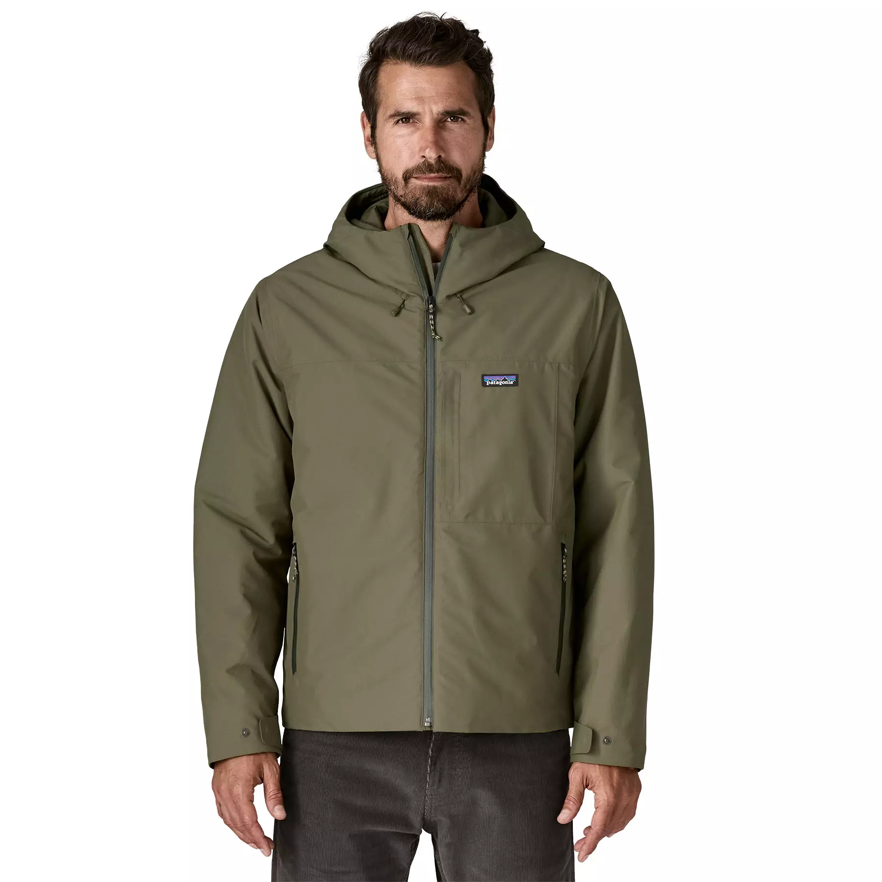 Front pockets warm your hands on chilly days; left-chest security pocket and internal chest pocket hold your valuables