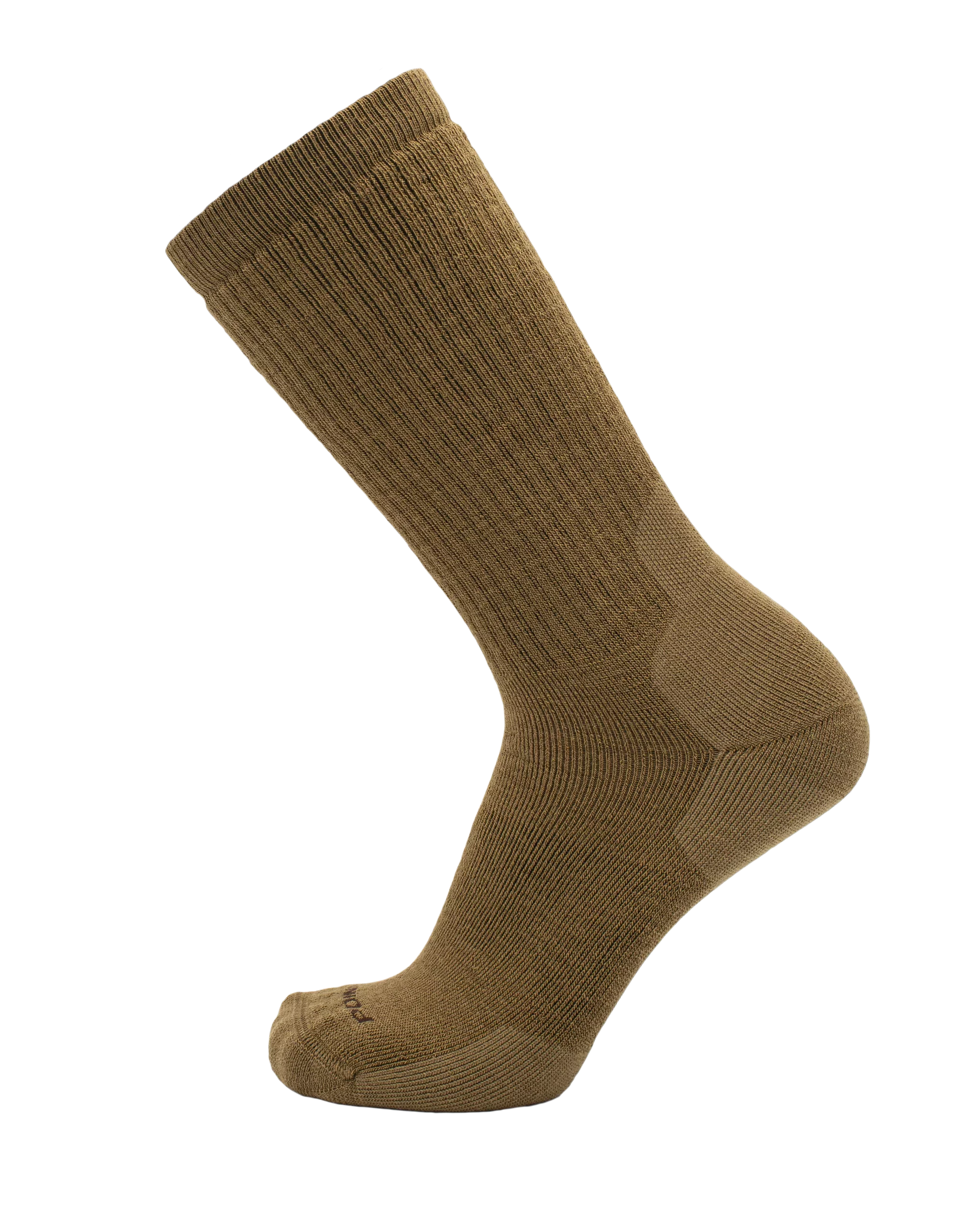 Excellent all climate versatile fast-drying merino wool sock. Medium cushion surrounds entire foot and leg, reinforced heel and toe, ankle and arch support. Higher cut than a crew, and shorter than over the calf for the perfect work boot fit. Stay drier longer and increase athletic output.