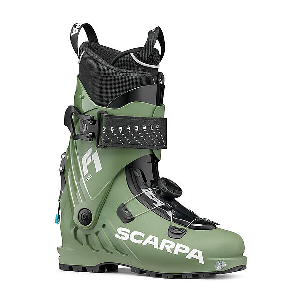 The SCARPA F1 SE is built for alpine touring — for adventurers who want to move fast uphill without compromising control and confidence on downhill sections. Weighing ≈ 1380 g per pair (≈ 690 g per boot),it is relatively light in its category.