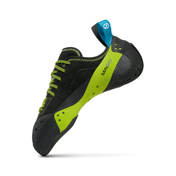 The new MAGO offers precision on small footholds without compromising sensitivity. New innovative materials and further refined technologies perfect this specialized performance shoe. The asymmetrical and downturned shape with a high-angled toe box focus power on the big toe. The TPS insert combined with X-Tension gives optimal support and power on small footholds.