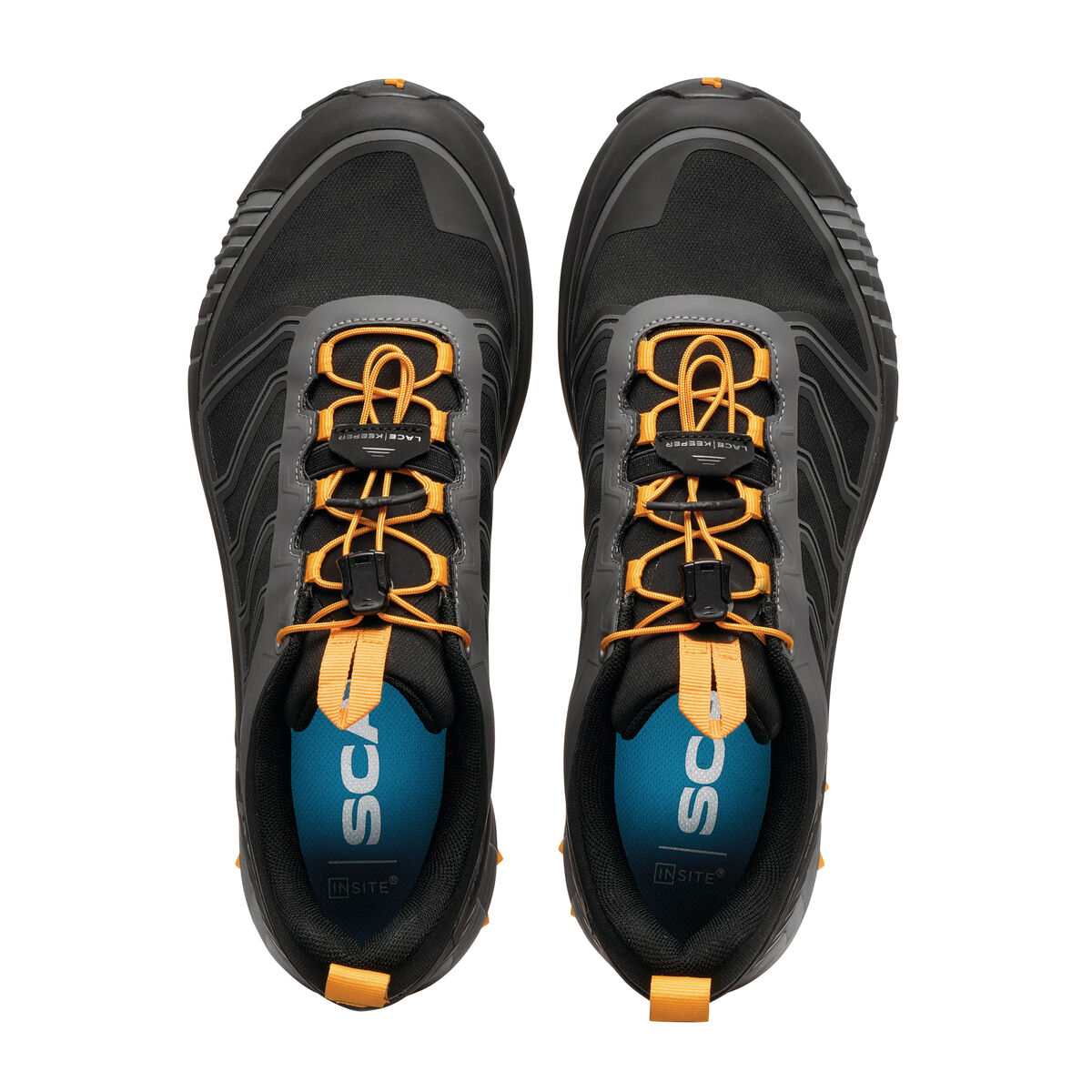 Breathable and durable mesh combined with SCARPA’s EXO system, which forms an integrated exoskeleton providing lateral foot support. A key element is the innovative 3S FRAME, which fully envelops the shoe’s structure, providing superior support and optimal protection—especially effective on the unstable terrains typical of mountain running.