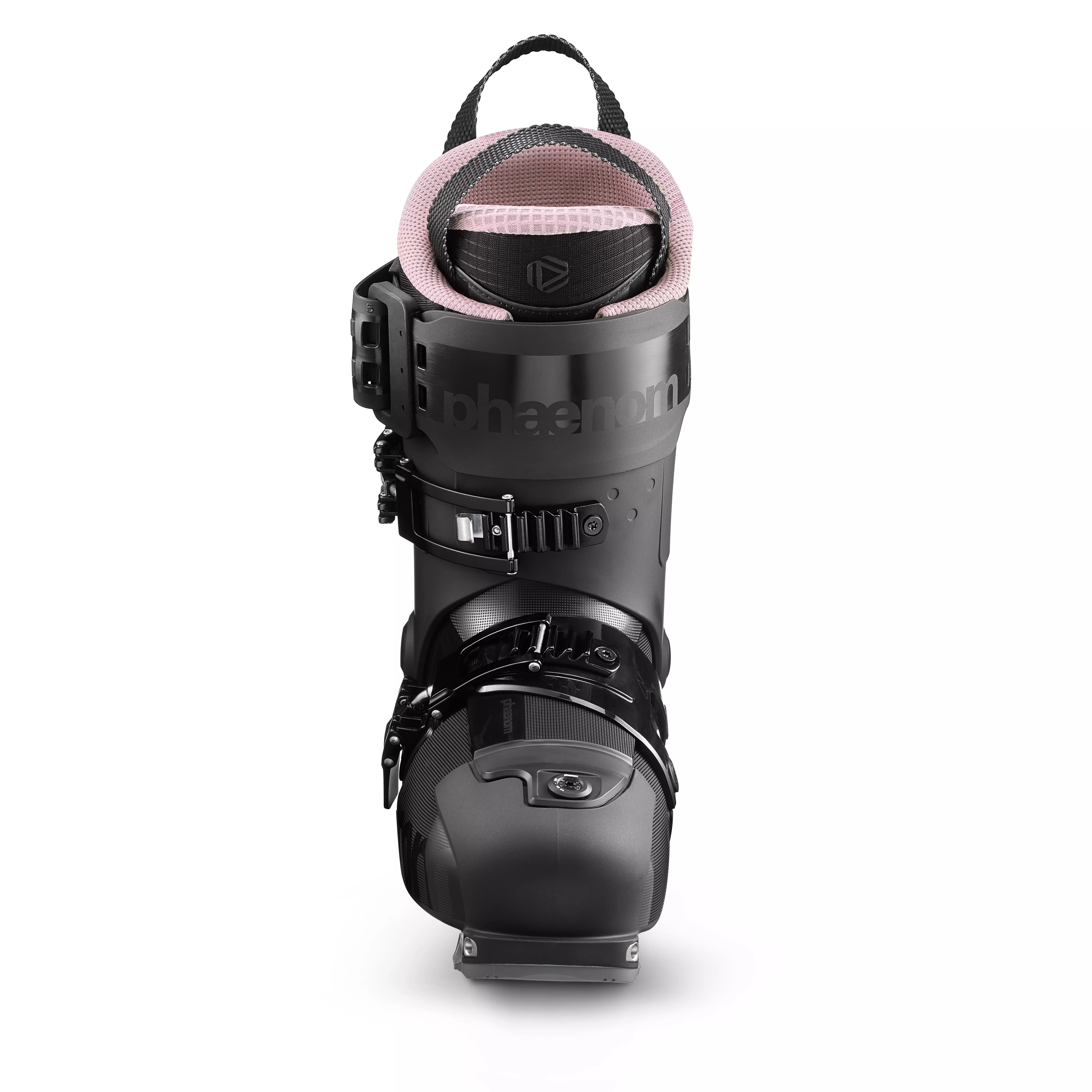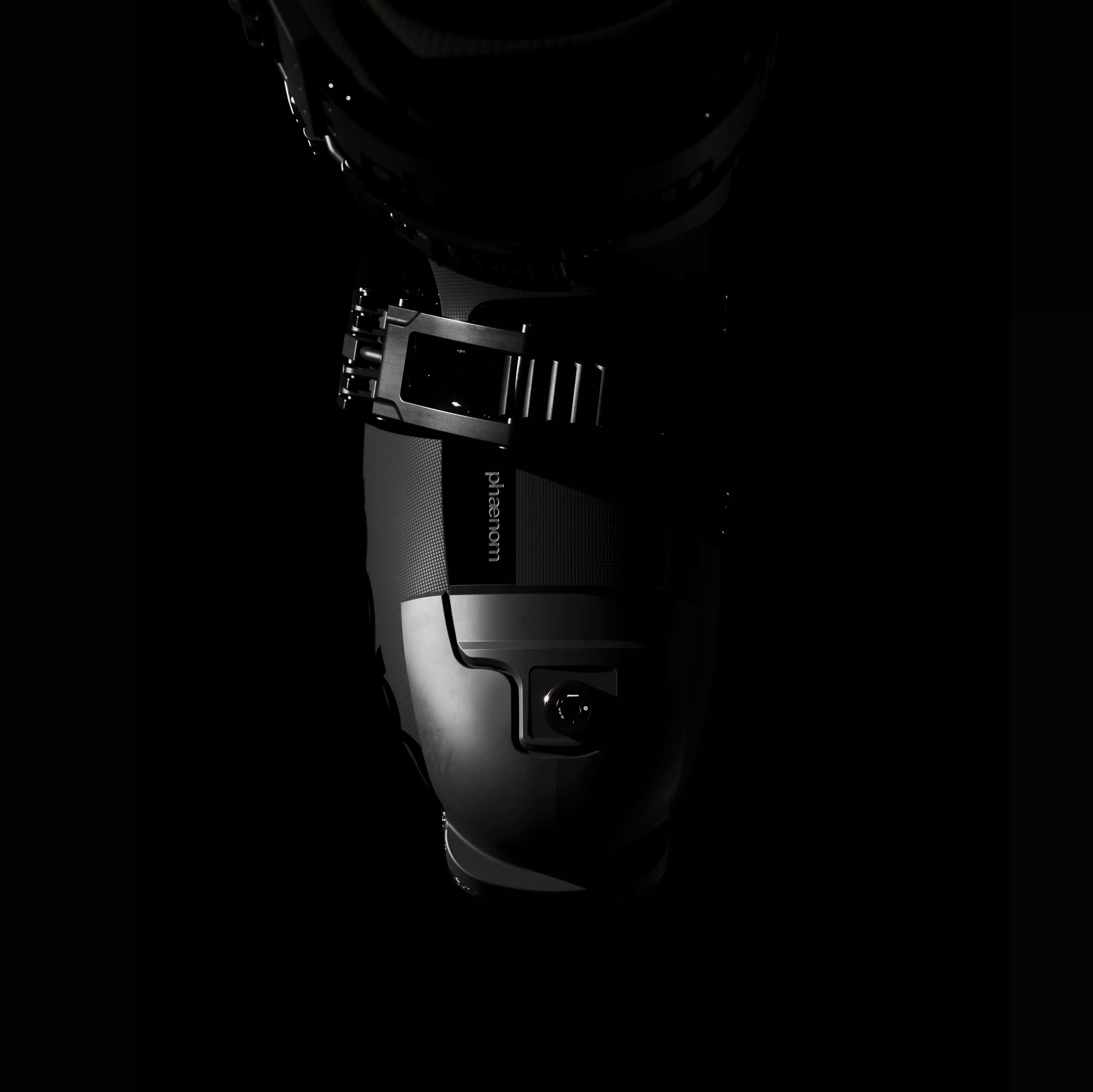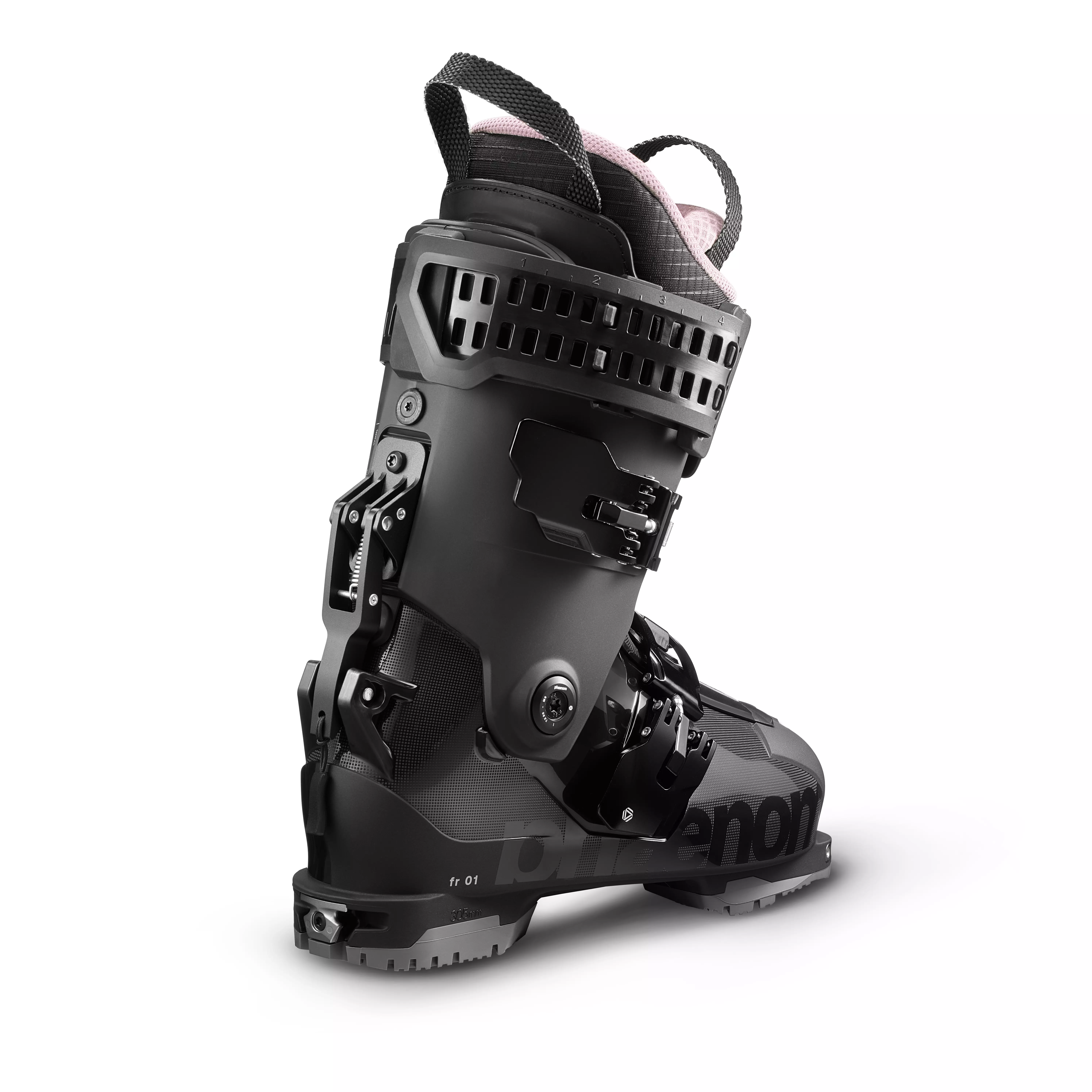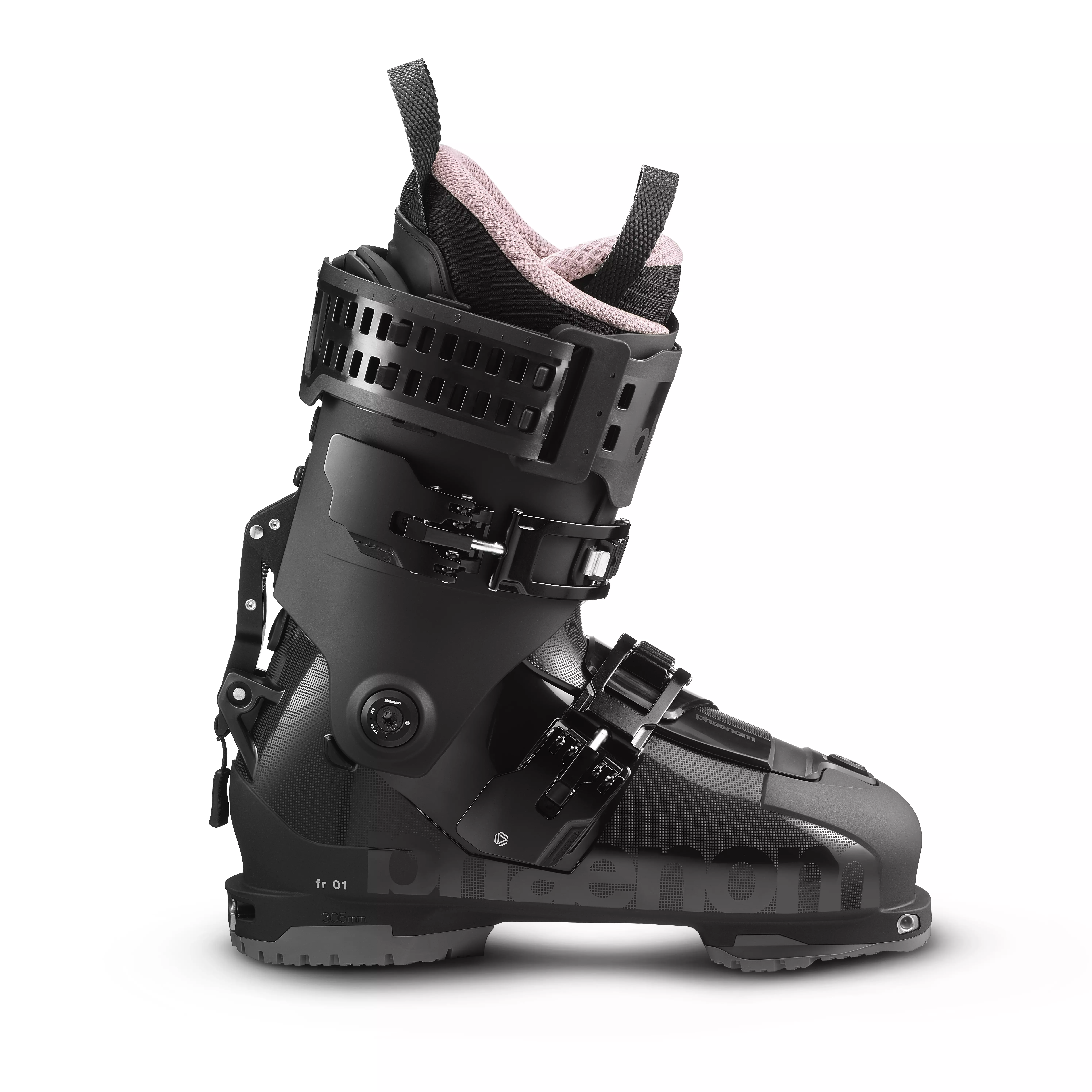 The fr 01 120 freeride boot is equipped to take you off the beaten path. It's engineered for powerful downhill performance. This all-new ski boot features a liner specifically designed for smaller feet, ensuring a precise and comfortable fit. The innovative hybrid cabrio / overlap construction combines the best of both worlds: the close fit and edge control of the overlap, and the progressive flex of the 3-piece. Paired with the patent-pending phaenom strap, the fr 01 120 provides rebound, shock absorption and exceptional flex control. The elasticity of the strap generates tangible rebound through your turns, for increased power transmission, turn initiation precision, comfort and predictability. The sleek all-black design supports restoration and reuse of the boot and its parts. Each element of this product — from panels to buckles to straps and screws — is designed to be repairable and recyclable.