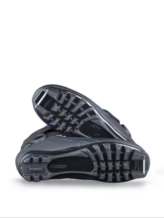 A touring boot for both skating and classic technique on groomed trails with a flexible front foot for classic striding and a supportive ankle cuff for skating.