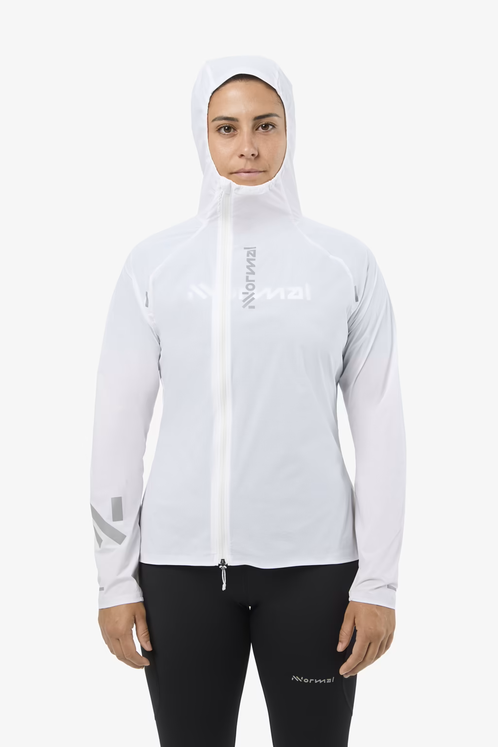 The Nnormal Trail Wind Jacket is an ultra-light, wind-resistant layer designed for trail running and outdoor activity. Made from 100% recycled, soft-touch polyester and weighing just around 123 g, it offers excellent packability and freedom of movement. A two-way front zipper allows quick ventilation control, while reflective details ensure visibility in low light. With an adjustable hood and a stowable design that folds into its own pocket, it’s a versatile choice for unpredictable weather on the trail.