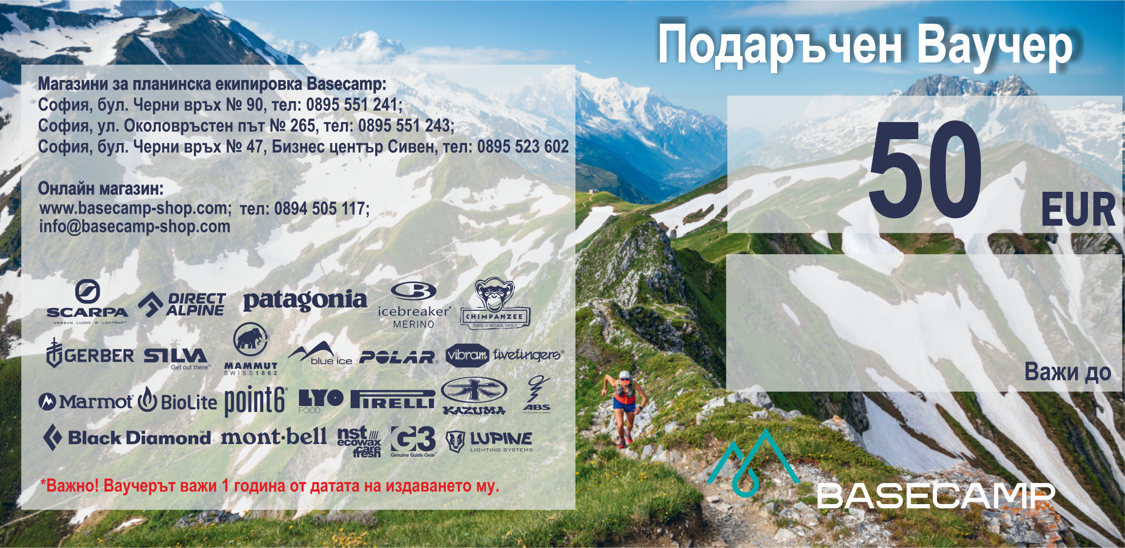 Подаръчен ваучер за магазини Basecamp, подходящ подарък както за специални поводи като годишнини, рождени дни, семейни празници, така и за колеги, бизнес партньори и др.