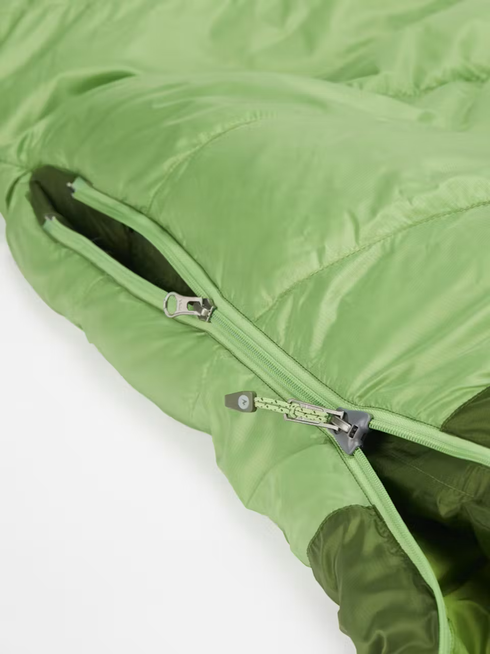 Anti-snag slider on the main zipper and fold-down secondary zipper provide extra ventilation and easy access in and out of the sleeping bag.