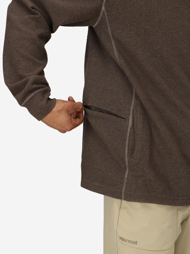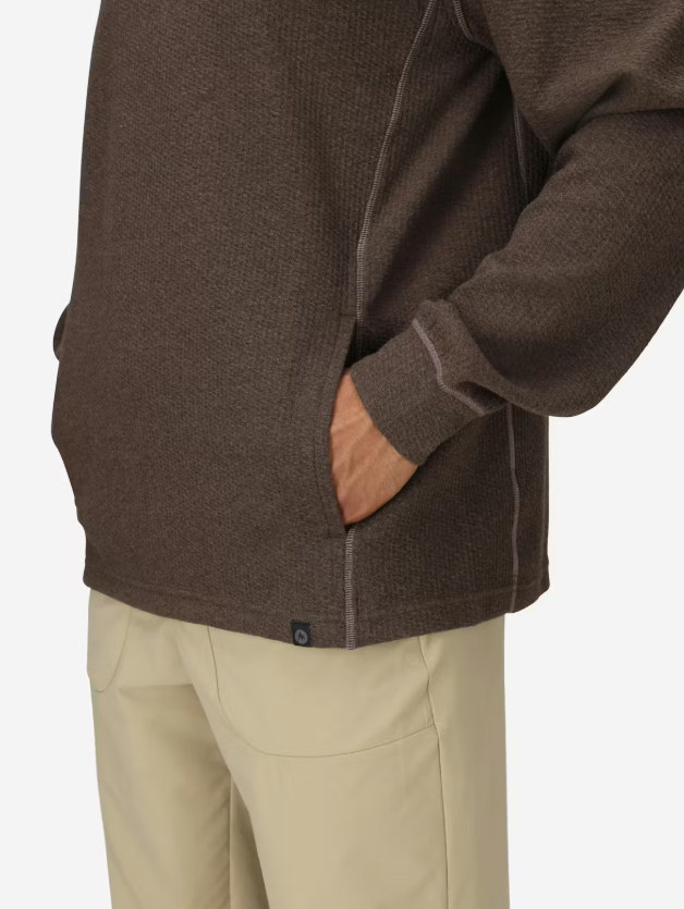 The Marmot Ridge Tech Hoody is designed for everyday comfort and mobility. Its structured outer fabric combined with a soft inner surface delivers durability and a pleasant feel throughout the day. The blend of cotton, recycled polyester, and elastane provides stretch, breathability, and freedom of movement.