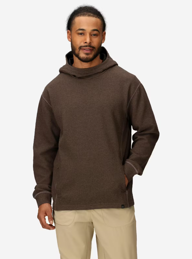 Comfortable and versatile men’s hooded sweatshirt made from a stretchy, breathable fabric blend, suitable for everyday wear, travel, and outdoor activities.