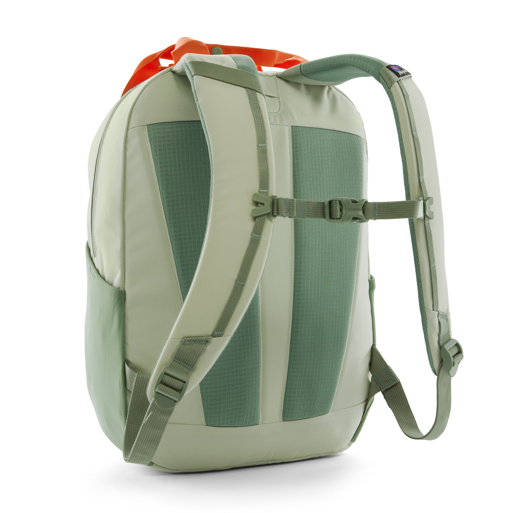 All fabrics, spacer mesh and static mesh are 100% recycled (stretch mesh is 72% recycled),and the body fabric has a durable water repellent (DWR) finish made without perfluorinated chemicals (PFCs/PFAS); pack volume is 20 liters