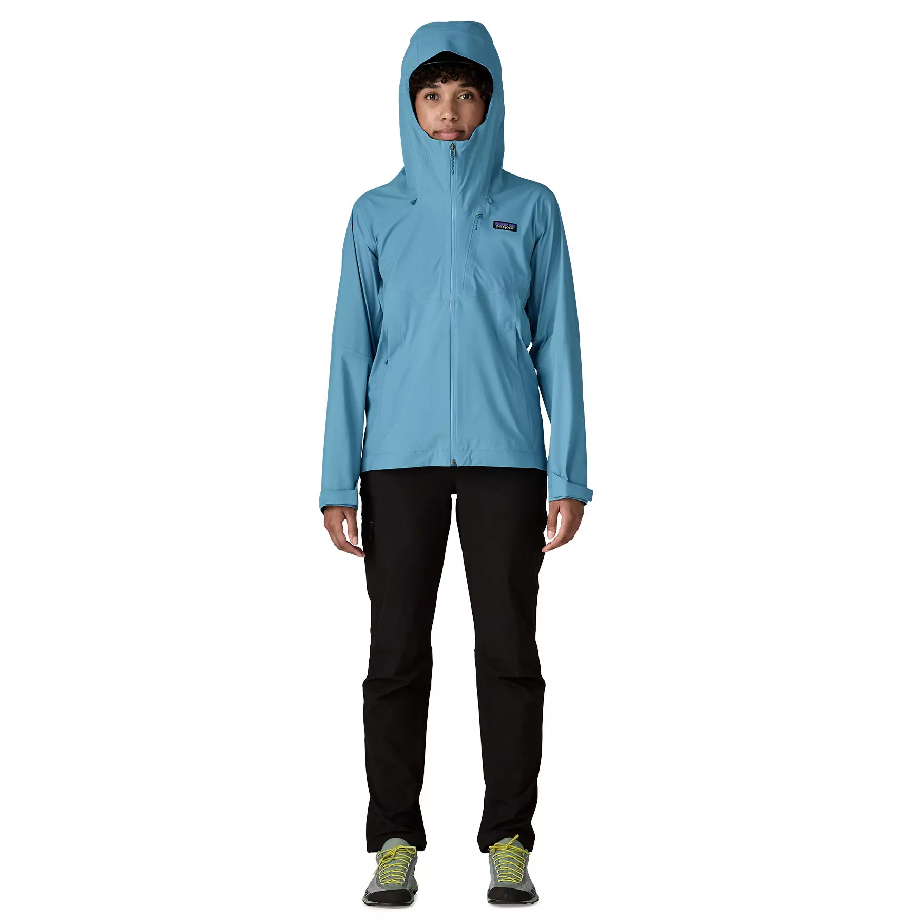 Jacket has low-profile self-fabric hook-and-loop cuff closures and self-stuffs into the left-chest pocket