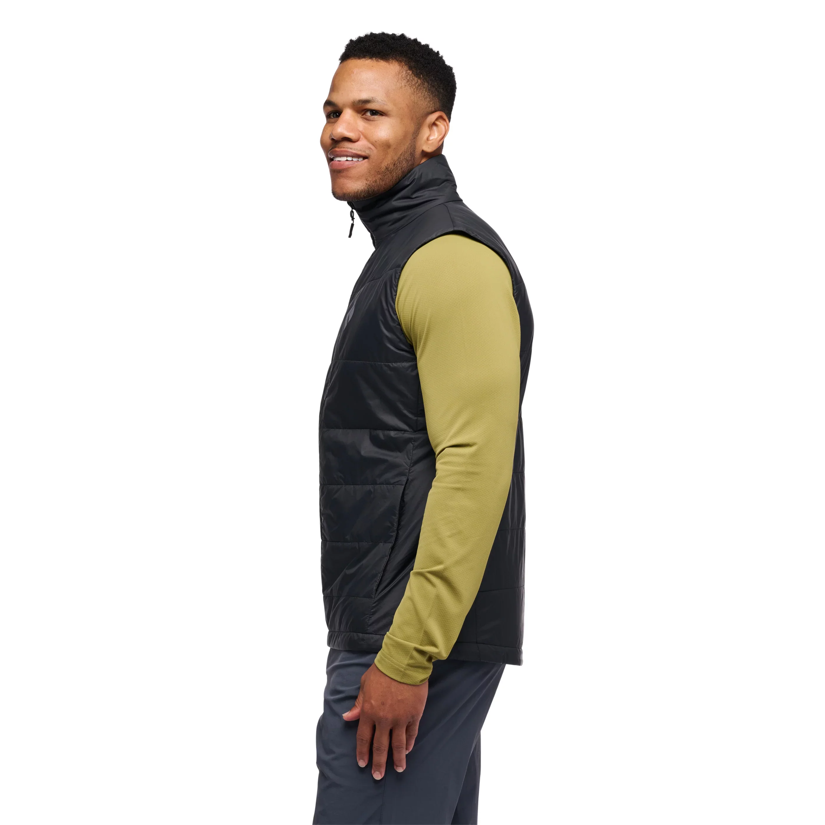 Featuring 60-g PrimaLoft® Gold Insulation, this vest shuts down the cold from the inside out, and stuffs into its own pocket for packability while on the move. The durable polyester shell and lining is made from recycled content and features PFAS-free DWR technology for weather protection. Additional features include two zippered hand pockets and a zippered chest pocket to store essentials.